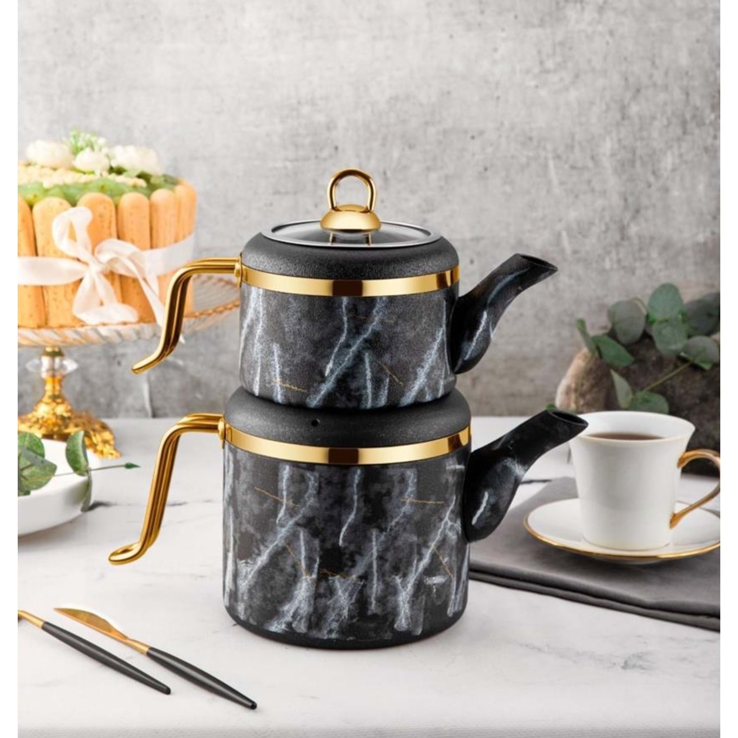 VİGO AİLE BOY ÇAYDANLIK TAKIMI GRANİT SİYAH